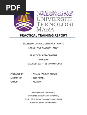 Practical Training Report Bachelor Of Accountancy Hons Faculty Of Accountancy Consultant Audit