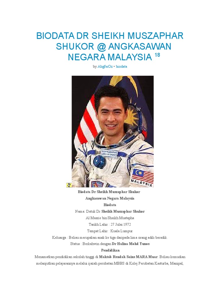 Biodata Dr Sheikh Muszaphar Shukor Doc Document