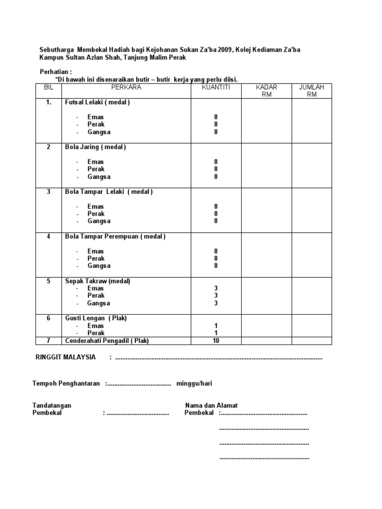 Quotation Contoh Surat Sebutharga