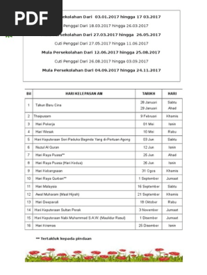 Kalendar Cuti Umum Dan Cuti Sekolah 2017