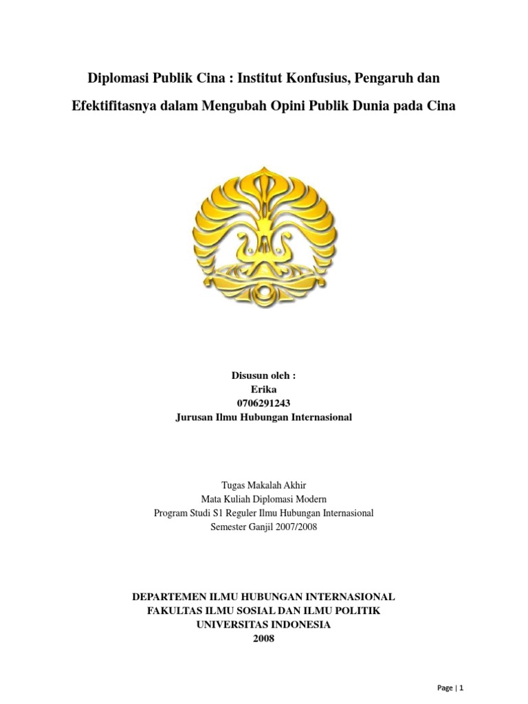Diplomasi Publik Cina Institut Konfusius Pengaruh Dan Efektifitasnya Dalam Mengubah Opini Publik Dunia Pada Cina