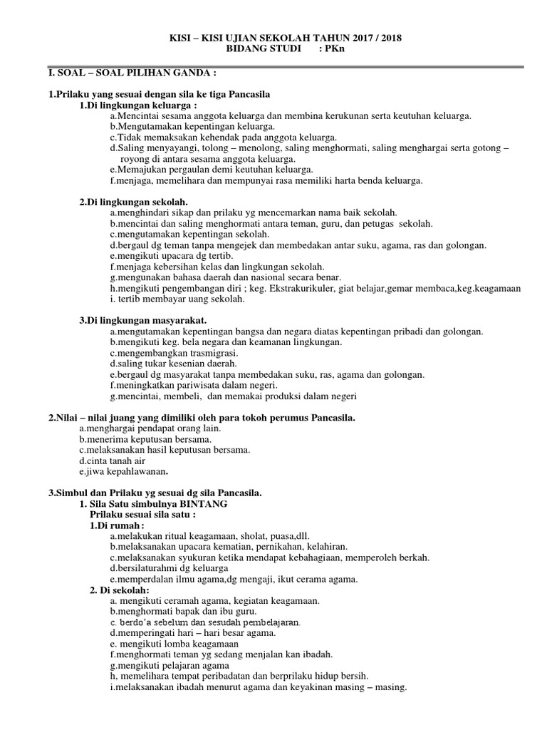 Kisi Kisi Ujian Sekolah Pkn 1718