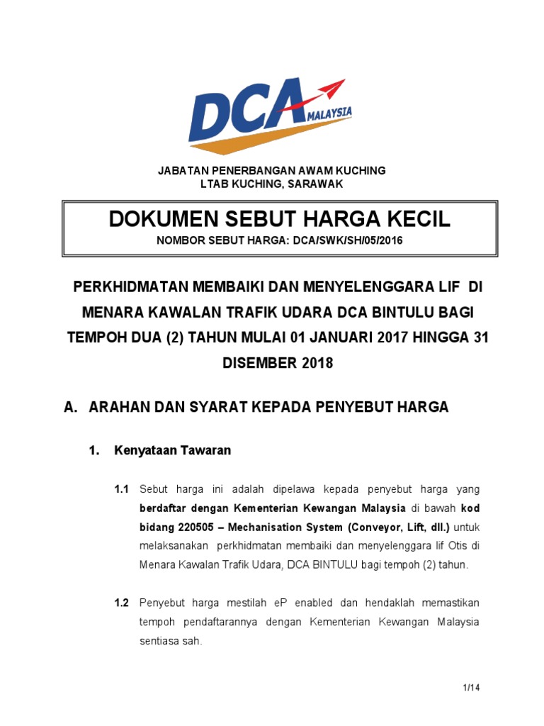 Dokumen Sebut Harga Kecil Penyelenggaraan Lift Btu