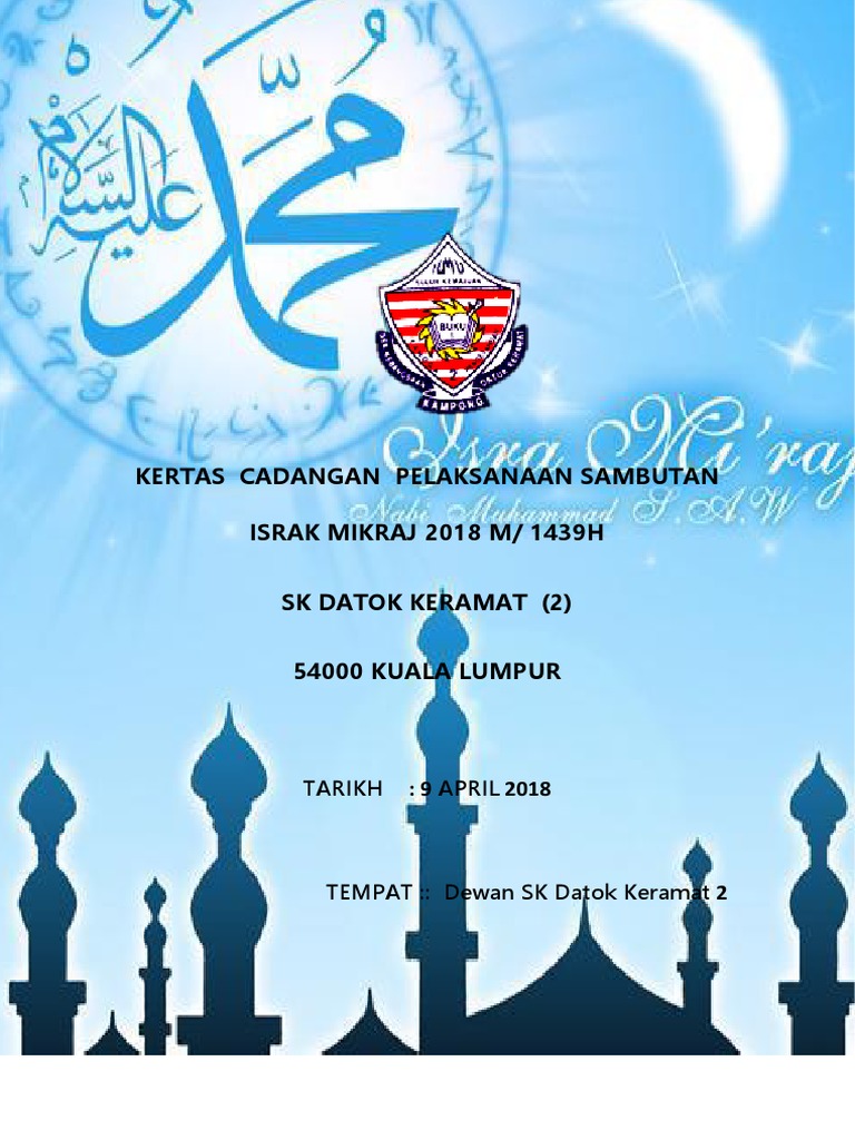 Kertas Cadangan Pelaksanaan Sambutan Israk Mikraj 2018 M 1439h Sk Datok Keramat 2 54000 Kuala Lumpur
