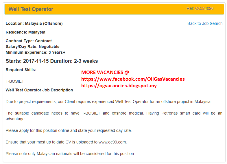 Oil Gas Vacancies Well Test Operator Oil Consultant Malaysia